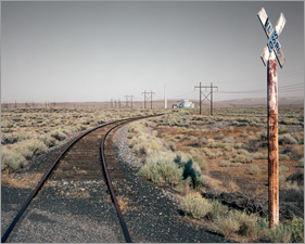 Railroad Tracks and B Reactor, Source of Nagasaki Bomb Plutonium, Hanford Nuclear Reservation, WA1944